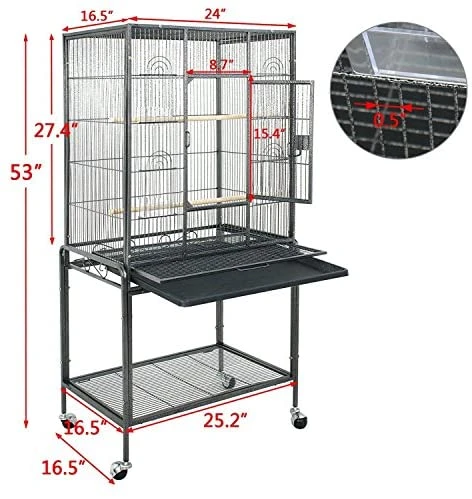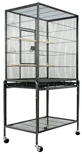 - 360° Swivel Casters – 4 strong swivel casters help you to move around without noise, it makes the place of the bird is flexible;Heavy-duty push button door lock keeps your bird secure