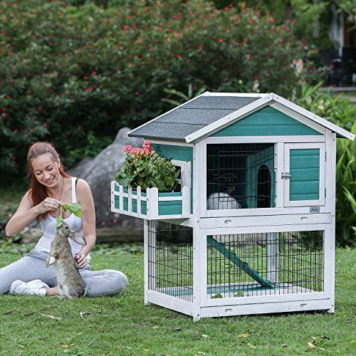 - Petsfit Bunny Cage, Outdoor Rabbit HutchAsphalt roof prevents rain from getting in your pets’ house, which can keep inside dryΒ