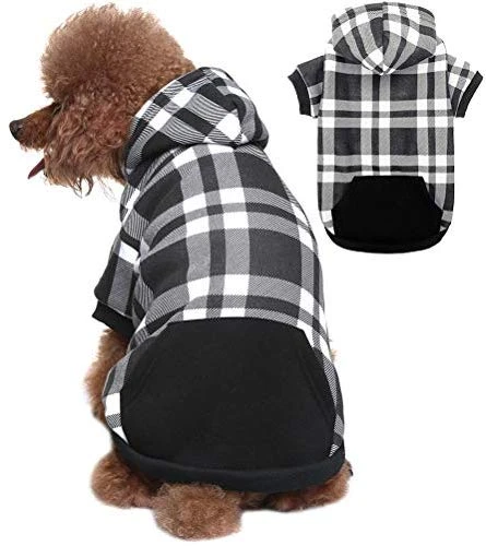 - Made from high-quality, soft fleece material, this dog hoodie is perfect for small and medium-sized dogs. It features a plaid design for a trendy look.