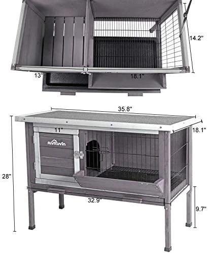 - Easy to assemble and clean, the Aivituvin Rabbit Hutch includes a removable tray for quick waste disposal and a waterproof roof to protect your pet from the elements.