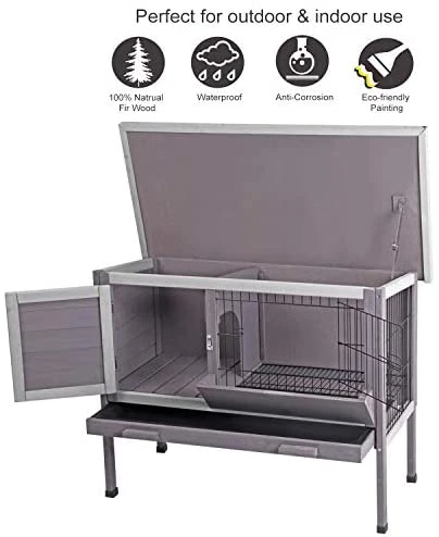 - Aivituvin Rabbit Hutch, Wooden Bunny Cages Indoor The Latest Upgrade: Extra metal wire pan above the tray so bunny will not standing on their poop. Give your rabbit safe and comfortable outdoor home.