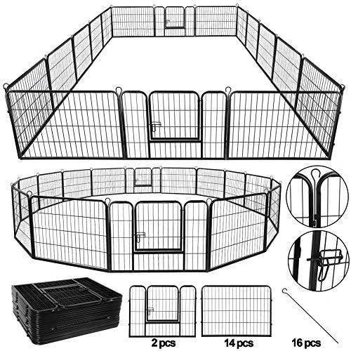 - ZENY Fold able Metal Pet Exercise Pen Multiple Shape Configurations — 16-panel design allows for multiple shape configurations and can be split into two 8 panels to meet your needs, such as the shape of rectangle, square or octagon.