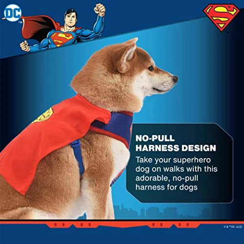 DC Comics is ready for your superhero pet! Let your four-legged best friend leap into action as Superman in this cute Superman dog harness. This adorable Superman harness is not only fun but fashionable and is sure to please your pup and your friends. The DC Comics Superman dog harness is made with high quality, lightweight fabric that your pet will actually want to wear. The lining is incredibly comfortable for your pup. This is a great dog harness that can also double as a Superman costume for dogs. It could be a dog Halloween costume or a dog outfit for everyday wear to wear during dog walks around the neighborhood. This no pull dog harness is great for all dogs and comes in multiple sizes. The size small dog harness is a dog harness for small dogs. The size medium is a dog harness for medium dogs. The size large is a large dog harness for big dogs. Please see sizing chart for more information and to find your dog’s proper fit. In addition to this dog harness from Superman, also be sure to check out Superman dog apparel & accessories as well as Superman toys for dogs. DC Comics makes dog chew toys, squeaky dog toys, small dog toys, large dog toys, plush dog toys, and Superman figures for all dogs. DC Comics also make Superman clothes like dog t shirts that are comfortable for pets. Dog apparel come in multiple sizes to bring pets apparel & accessories for all dogs. YOUR SATISFACTION IS OUR PRIORITY*: If you have any questions or feedback, please email us at [email protected]
