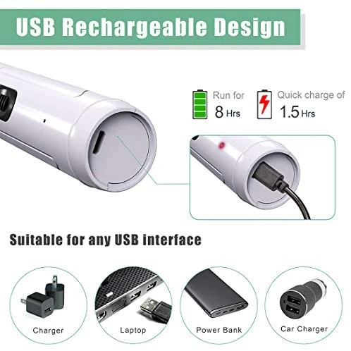 - Includes 2 grinding heads for different nail sizes and a USB rechargeable battery for convenient use. Perfect for at-home grooming or travel.