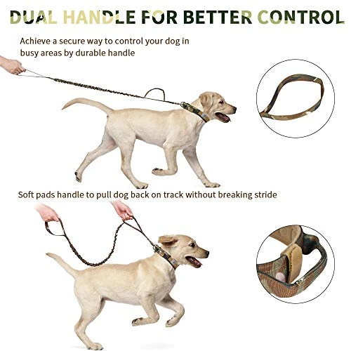 - ???? BUNGEE LEASH – The elastic dog leash has elastic stretch(expands about 53 inches), elasticity cushion keeps your arm or your dog’s body from getting yanked when your dog’s change direction or forward suddenly, enough stretch will reduce the risk of injury and increases comfort.
