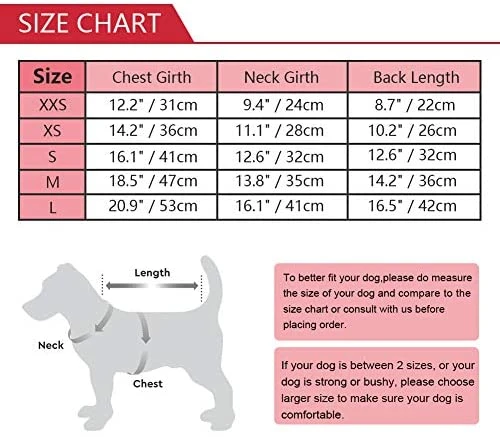 - Available in multiple sizes to fit small to medium dogs. Please refer to the size chart to find the perfect fit for your pet.