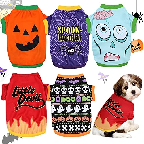 - Enough to Wear: you will receive 5 pieces of Halloween dog shirts in different styles at one time, sufficient quantity for your pets to wear and replace in daily life; These shirts printed with classic Halloween patterns, which will enhance the festival atmosphere