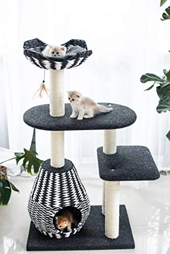 - Features include multiple levels for climbing, cozy condos for napping, and dangling toys to keep your cat entertained for hours. Ideal for both cats and small dogs.