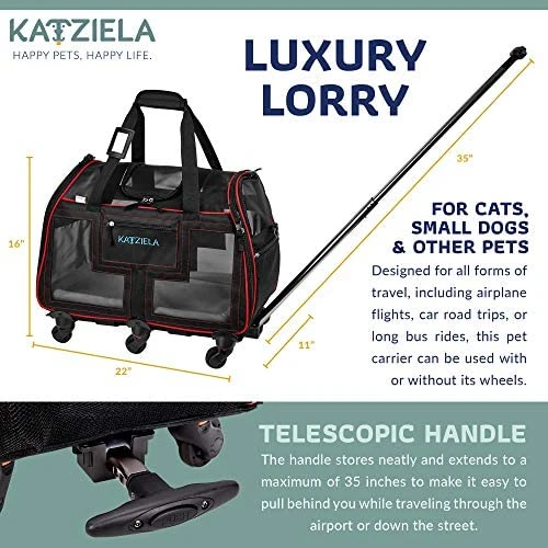 - Katziela Airline Approved Pet Carrier LUXURY TRAVEL PET CARRIER – Every Luxury Lorry pet carrier is lovingly crafted for your furry friend’s ultimate comfort, with soft yet durable materials to replace standard hard plastic,Â