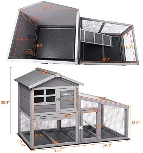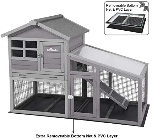 - Large indoor rabbit hutch with removable bottom wire-netting and PVC layer for easy cleaning also prevent the predators from the underground.