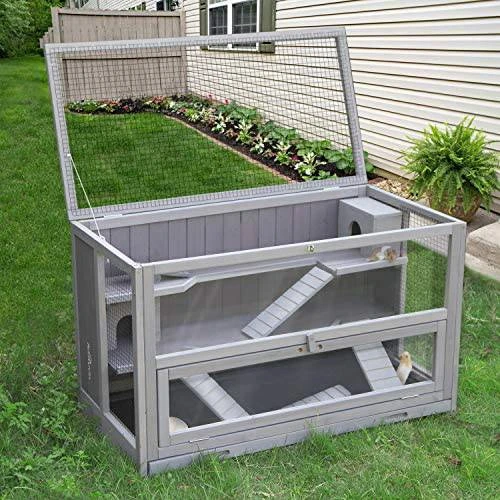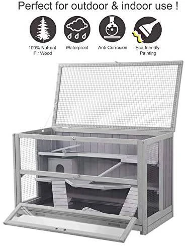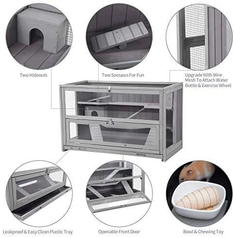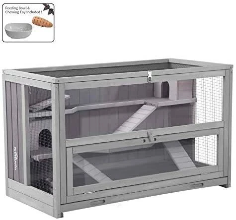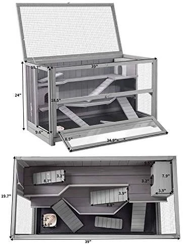 - Aivituvin Rabbit Hutch, Wooden Bunny Cages Indoor 3 levels give your small rodent a roomy place to burrow and run. Clear acrylic design allows you to enjoy watching your hamster play. Overall size:38.98″L x 19.69″W x 24.02″H