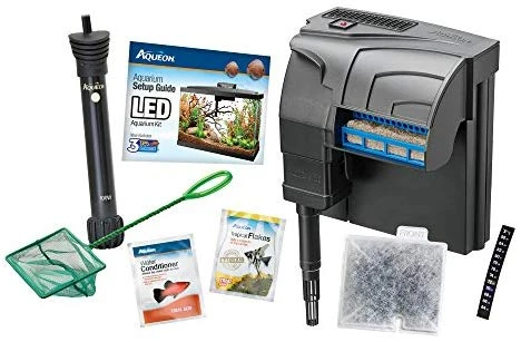 - Designed for ease of use, the Aqueon Aquarium Fish Tank Kit comes with a detailed setup guide to help you create a healthy and vibrant aquatic environment. The included LED lighting enhances the beauty of your fish and aquarium decor, making it a stunning centerpiece in any room.