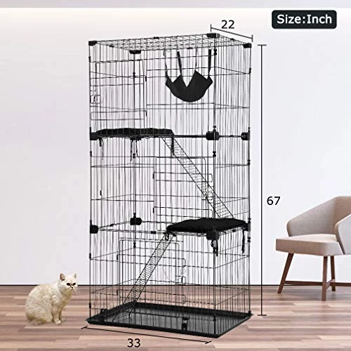 - Easy to Assemble & Clean: The cat cage features a user-friendly design, making it easy to set up and disassemble. The removable tray ensures hassle-free cleaning and maintenance.