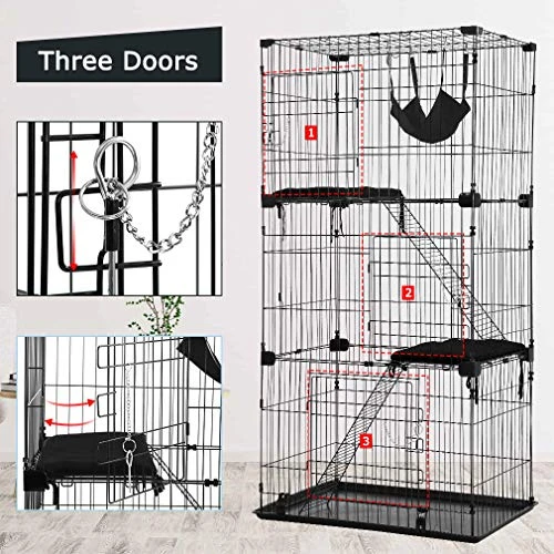 - : Cat Cage, Crate, Kennel & Playpen Easy to Cleaning Large cat cage is built in 3 oversized front opening doors for easy and full access to the cat playpen. Large base slid-out tray of cat crate closely attached by an artful locking buckle provide easy cleaning of the cats litter box. Cat cage cat playpen cat crate
