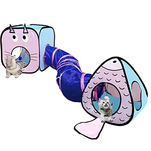 - ????3-IN-1 Design: Combined design of cat tunnel, cat cubes, cat tent. Compared with traditional cat tunnels, this upgraded tunnel nest makes a fun place for cats to lounge and play. We believe that your pets will like this tunnel house very much.