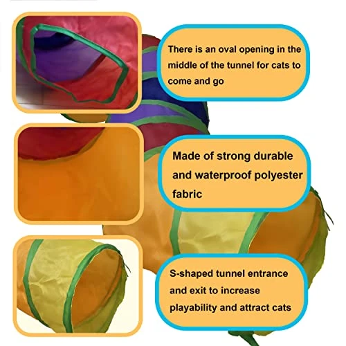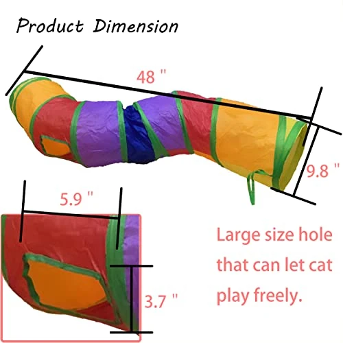 - Suitable Size: The S-shaped tunnel is 48 Inch long and is suitable for most cats and small animals. Also, you can combine two tunnels together to build a maze for your pets.