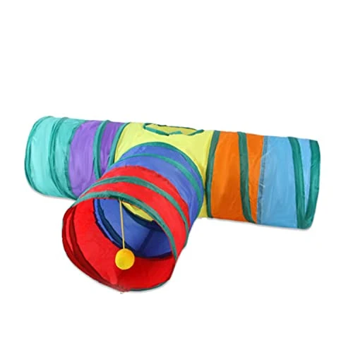 - Interactive 5-Way Design: The CATTUNNEL-5R features a unique S-shape with 5 collapsible sections, providing multiple entry and exit points for your cat to explore and play.