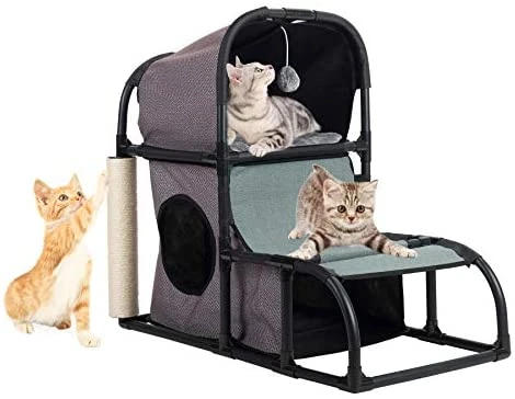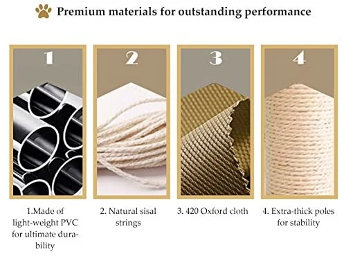 - A COMPLETE & DURABLE SET, CO-Z 4 in 1 Multi-Functional Cat Tree Condo Furniture has everything and more: a sleeping area, cat house, climbing ladder, scratching post, and a platform to lay on, creating a complete piece of cat furniture for your cat or kitten; 420 Oxford cloth roof & climbing ladder together with soft plush cushion keep cat warm and comfortable throughout the year;
