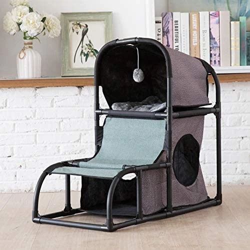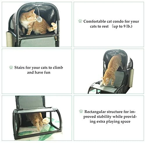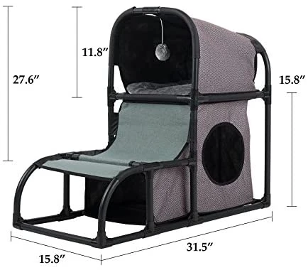 - COMPACT & HEAVY DUTY, CO-Z 4 in 1 Multi-Functional Cat Tree Condo Furniture measured at 27.6â x 15.8â x 31.5â and weighing merely 5.4 lb., our cat tree is a real space saver and can be transported effortlessly; PVC frames plus a 15.8â x 31.5â base offers superb stability & up to 17.6 lb. capacity, allowing at least 2 cats to play on this cute cat tree