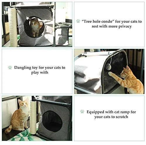 - DETACHABLE DESIGN FOR SIMPLE WASHING, CO-Z 4 in 1 Multi-Functional Cat Tree Condo Furniture can be detached for effortless washing, which helps to minimize germs and parasites and keeps your cuties in good health and hygiene.
