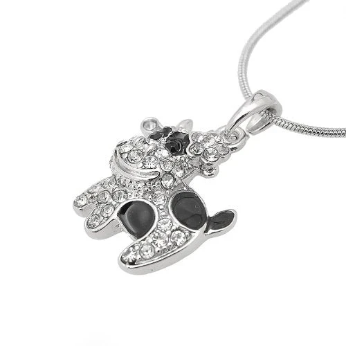 - Crafted with high-quality materials, this necklace features a stunning black spot cow design adorned with sparkling crystals, making it a standout accessory for any occasion.
