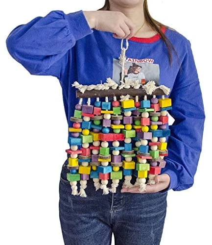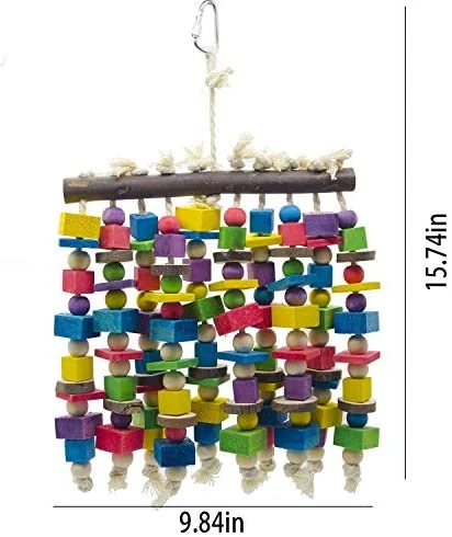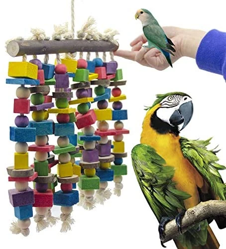 - There are several multi-colored blocks in this single toy to entice your bird. These blocks are arranged in multiple layers to climb and explore.Birds also love to untie cotton rope knots, which satiates their natural urge to chew.
