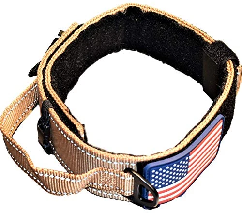 - Dog Collar with control Handle TACTICAL DOG COLLAR WITH HANDLE POLICE MILITARY K9 STYLE WITH USA AMERICAN FLAG PATCH – REFLECTIVE DOG COLLAR STITCHING
