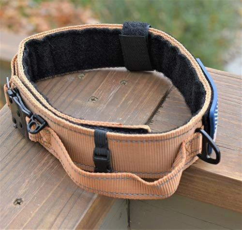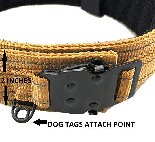 - Dog Collar with control Handle 2 IN. DOG COLLAR WIDE THICK NYLON TACTICAL DOG HARNESS WITH HANDLE DOG COLLAR WITH NAME PLATE 10″ OF HOOK AND LOOP FOR NAME PLATE PERSONALIZED SERVICE DOG PATCH