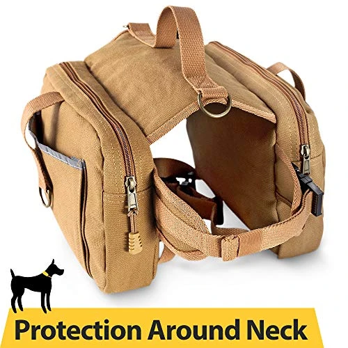 - : Dog Hiking Saddle Bag Padding Protection Around Neck – Additional two paddings at the collar to protect the dog’s neck from rubbing by the buckle.