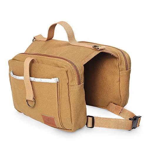 - : Dog Hiking Saddle Bag With Reflective Strips ] – Comes with a reflective strip on each side, to be more safe when walk in the dark, and easier to find if your dog is lost at night.