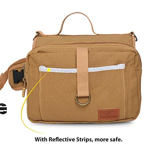 - : Dog Hiking Saddle Bag High Density Canvas & Reformative Durable Design ] – Made of 16 oz cotton canvas, with high-strength stitching, reinforced the weak spots to make sure the bag won’t be destroyed easily by your dog.