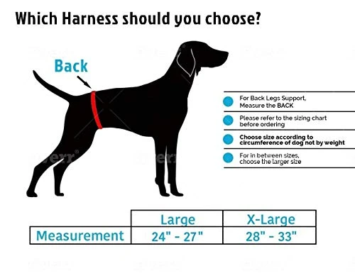 - DOG LIFT HARNESS SIZING: EXTRA LARGE SIZE (BLACK)Â – Ideal for dogs measuring between 28 – 33 inches in Girth and weigh 75- 200 lbs