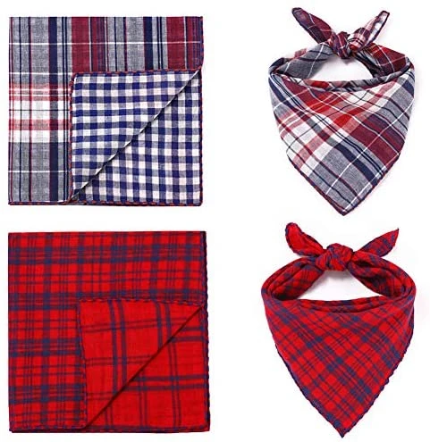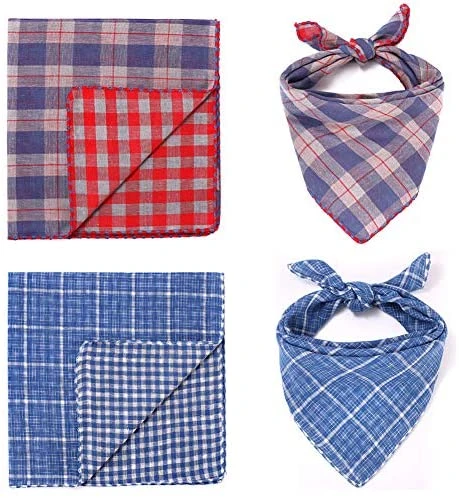 - Reversible Plaid and Delicate Overlock: Our bandana dog is reversible and has a different plaid pattern on each side. It means that 12 styles will be gained through 6 scarves. The delicate overlock looks more tasteful.
