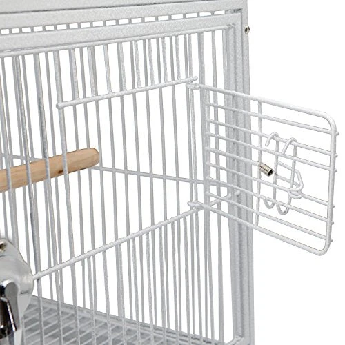 - CONSIDERATE CARE: Heavy Duty Wrought Iron Travel Bird Cage Carrier features 2 large stainless steel food bowls on the door for convenient feeding. And the wooden perch inside provides a place for your cute feathered friend to rest on.