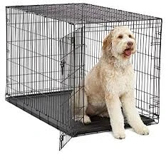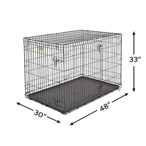 - XL DOUBLE DOOR FOLDING DOG CRATE ideal for dogs w/ adult weight of 90 – 110 pounds | Convenient divider panel allows crate to expand as your dog grows | iCrate measures 48L x 30W x 33H inches