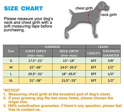- EASY TO USE AND LOCKING SECURITY:Â The dog harness with simple design and quick snap buckles which make it easy to put on and take off. Locking feature on both snaps makes it more secure, 100% ensures no accidentally detachment. 4 easy size adjustors at neck and chest for easy adjusting to fit your dog perfectly, even with some room of growth. Perfect for daily walking, running, hiking, training, hunting, outdoor adventure and more!