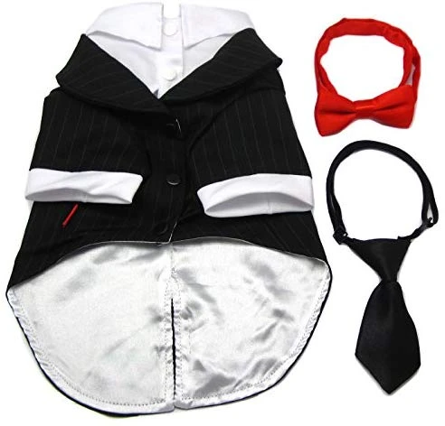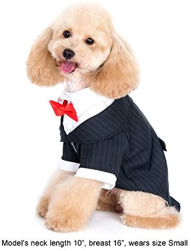 - Easy to put on and take off, this pet tuxedo is ideal for photo shoots, parties, or just making your furry friend the star of the neighborhood. Available in multiple sizes to suit your pet perfectly.