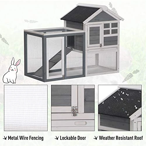 - ✅WEATHER RESISTANT: Made of durable weather resistant fir wood and a water-resistant composite asphalt roof, this outdoor rabbit cage will keep your furry friends dry and secured for years to come.