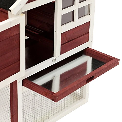 This 48″ outdoor rabbit hutch from PawHut is perfect for use with rabbits, guinea pigs, ferrets, and other small animals. This great 2-story ferret cage features sturdy construction from Firwood coated with a water-based preservative to ensure long-lasting use whether used indoors or outside in the elements. This chicken coop has a sturdy steel wire outdoor run for your pets to run around as well as an enclosed space for them to be able to sleep indoors. The outdoor run area is accessible by a ramp so your pet can enjoy the outdoors while still being protected from the elements and predators. There are 2 easy to open doors on the pet house to gain quick access to your pets, one is able to open up the outer run area and the other is to open the inner loft area. The main living area has a removable pull-out tray to make cleaning simple and quick.