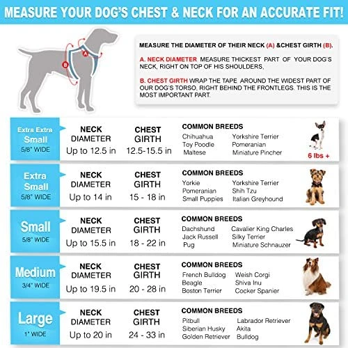 - SUITABLE FOR ANY STAGE OF THEIR LIVES: The extra small dog harness is an outstanding choice for breeds like Pomeranian Yorkie Shih Tzu Chihuahua Maltese Miniature Pinscher and small puppies Padded Dog Harness Measurements XS Harness Neck 14″ Chest 14″ to 18″ Width 5/8 Inch