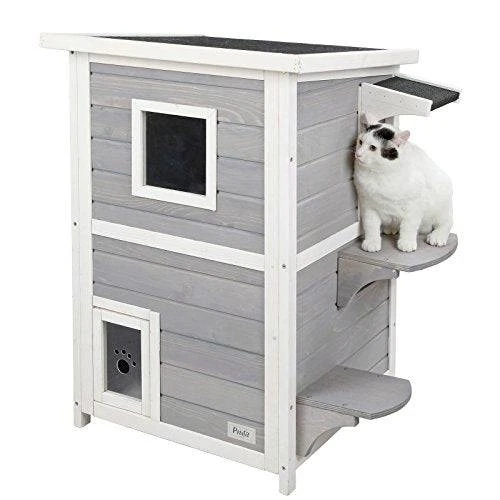 - Petsfit 2-Story Kitty Cat House Asphalt roof will keep rain and snow from getting in the house
