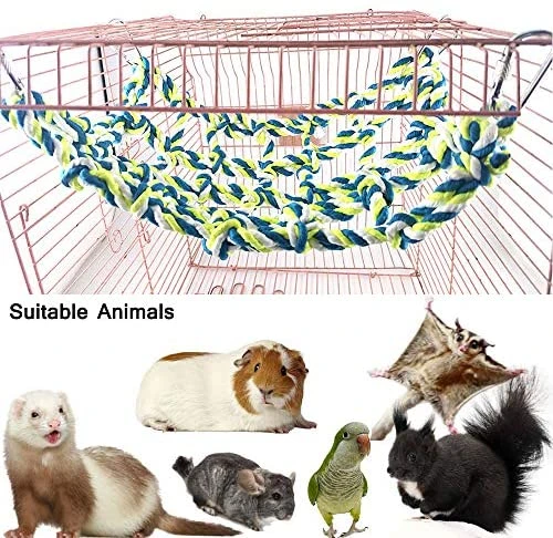 - Summer Hammock: A woven hammock in the summer allows the little friends to sleep with ease on a hot day. It can also be used as a climbing toy for parrots, as long as you hang two hooks.