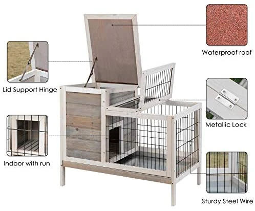 - Removable Tray: Rabbit hutch with removable tray, keep the hutch clean and tidy to save cleaning time.