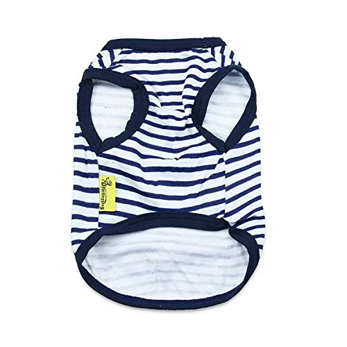 - Easy to put on and take off, this dog t-shirt features a simple yet stylish striped pattern that complements any outfit. Perfect for pet owners who love to dress up their furry companions.