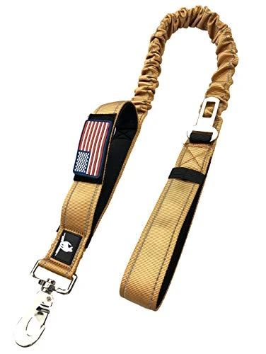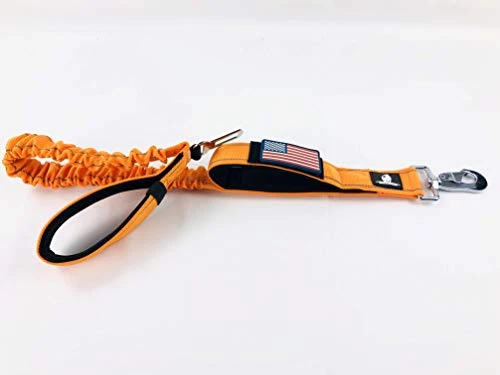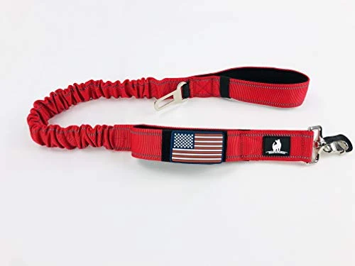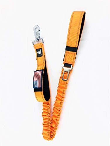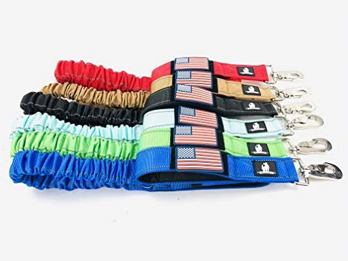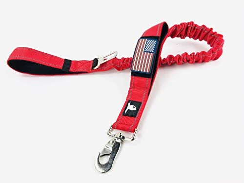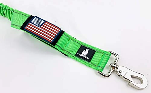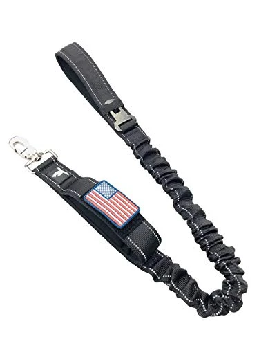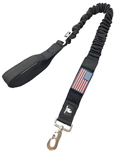 Designed By And Used By An Owner Of Large Breed Pet, Working, And Service Dogs. This Tactical Dog Training Reflective Leash Is A Perfect Solution To Get You Outside To Walk Jog Hike Run Or Trek With Your Big Large XL Or XXL Puppy K9 Or Adult Dog. This Black Reflective Diezel Pet Products Bungee Leash Helps Keep The Dogs Neck Safer. The Wide Big Strong 1.5″ Inches Wide Width Training Bungee Dog Leash Expands If Your Dog Should Pull Hard Or Jerk Unexpectedly. The Expanding And Retracting Feature Also Helps Remove The Wear And Tear On The Handler’s Hand, Elbow, Shoulder, Neck And Back When Your Extra Large Excited Dog Bolts After The Squirrel. We Also Added A Seat Belt Clip Sewn To The Leash To Keep Your Dog Restrained While Traveling. Just Plug It Into The Seat Belt Plug In Your Vehicle While The XXL Dog Is In Their Harness And Avoid Having A Huge Dog In Your Lap While Driving. We Also Provide A Hook And Loop Magic Sticker Name Plate Area For Adding Morale Patches To The Leash Itself. We Ship The Lead With A Great Looking Rubberized PVC Red White And Blue USA American Flag Patch To Every Dog Leash. Made From Heavy-Duty Nylon That’s Lightweight Yet Strong And Durable, This High-Quality Dual-Handled Leash Is Perfect For Controlling Your Dog In Almost Any Situation. The Bungee Action Allows The Leash To Extend From 36 To 50 Inches For Additional Range And To Also Reduce The Impact Of Sudden Movement.