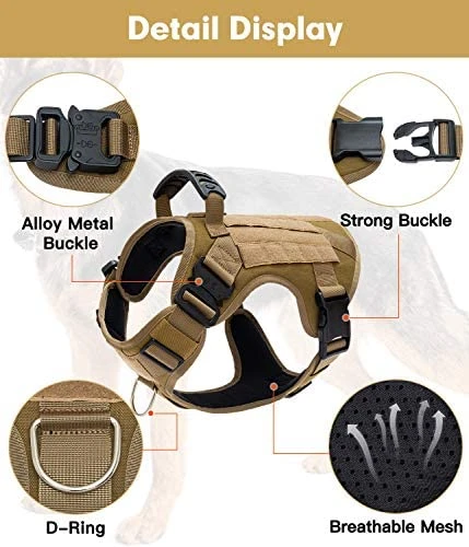 - Durable Military Mesh Design: Made from high-quality military-grade mesh, this tactical dog harness offers breathability and durability, ensuring your dog stays comfortable during long walks or outdoor activities.