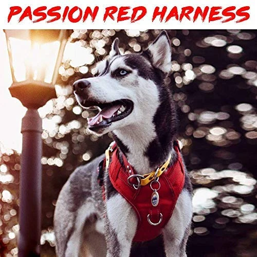 - LARGE SIZE RED DOG HARNESS(Dog collar included) – Chest girth: 22-35 inch. Our Passion Red no pull dog harness has Fully Adjustable Slide Straps at the chest and neck, not only great for large dogs but also suit for medium dogs, like golden retriever, Labrador, German shepherd, Husky, American bully pitbull and more(Collar can be used for attaching ID tags ONLY)