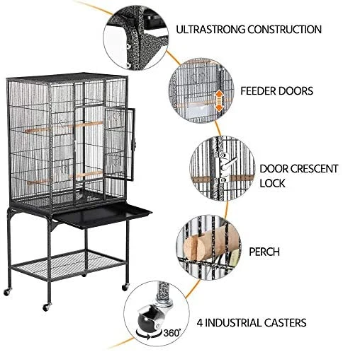 - Durable Wrought Iron Construction: Built to last, this 53.7-inch bird cage features a sturdy wrought iron frame, ensuring long-term durability and safety for your birds.
