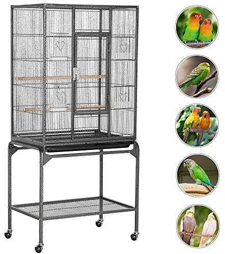 - Easy Assembly & Maintenance: The bird cage comes with a stand and is easy to assemble. Its removable tray and accessible doors make cleaning and maintenance hassle-free.