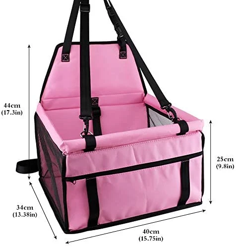 - [LATEST IMPROVEMENT]- Product Dimensions:15.75 * 13.38 * 9.8 inches fits small pets, dog car seat for Yorkies, Chihuahuas. fits small pets (dogs or cats) up to 15 lbs. We are based on buyer feedback, make some improvements about this pet car seat. Change the side support bar (PVC tube), add the seat back strap, shorten the harness leash.